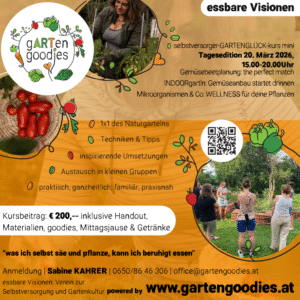 Wie wäre es mit einem individuellen Garten-Workshop – ganz nach deinen Wünschen und direkt in deinem Garten? Ob Gemüseanbau, Kräuterwissen, Permakultur oder nachhaltiges Gärtnern: Du bestimmst das Thema, den Termin und den Rahmen – ich bringe das passende Know-how, Material und ein liebevolles Gastgeschenk mit.